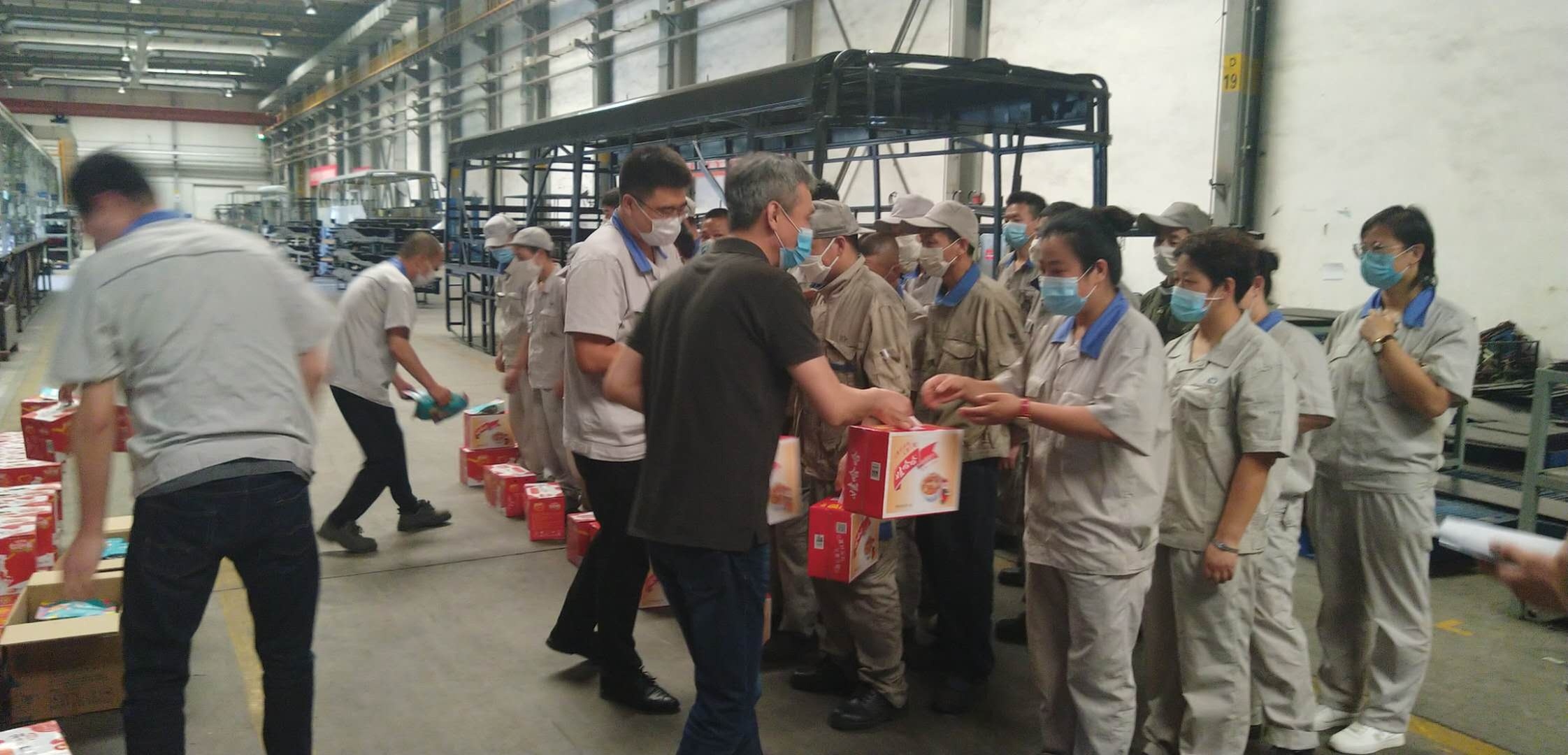 2020年端午節(jié)即將到來(lái),值此歡度佳節(jié)舉家團(tuán)圓之際,正是工廠大干如火如荼進(jìn)行之時(shí),為表達(dá)對(duì)節(jié)日期間奮戰(zhàn)在生產(chǎn)一線職工的節(jié)日問(wèn)候和崇高敬意,昭原集團(tuán)總經(jīng)理薛金昭帶隊(duì)管理人員深入生產(chǎn)現(xiàn)場(chǎng)對(duì)大家進(jìn)行慰問(wèn),為大家發(fā)放節(jié)日禮品。通過(guò)實(shí)際行動(dòng)為生產(chǎn)一線的員工送去節(jié)日的祝福,同時(shí)為生產(chǎn)一線鼓足干勁,為大干熱潮鼓勁加油。